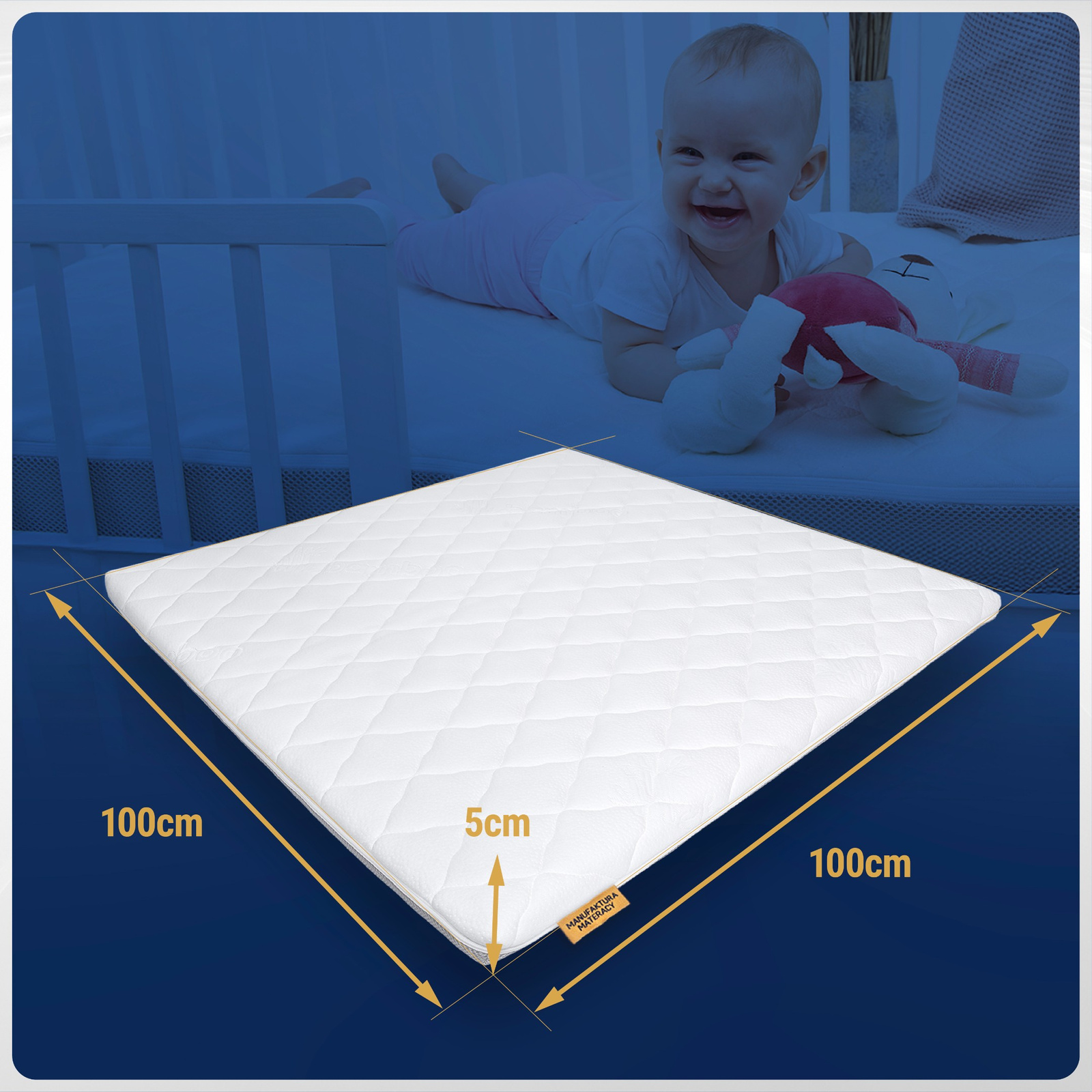 ⚠️ Przed zakupem sprawdź wymiar wewnętrzny (nie zewnętrzny) kojca. Powinien on wynosić ok. 90x90cm. Inaczej materac nie będzie pasował.