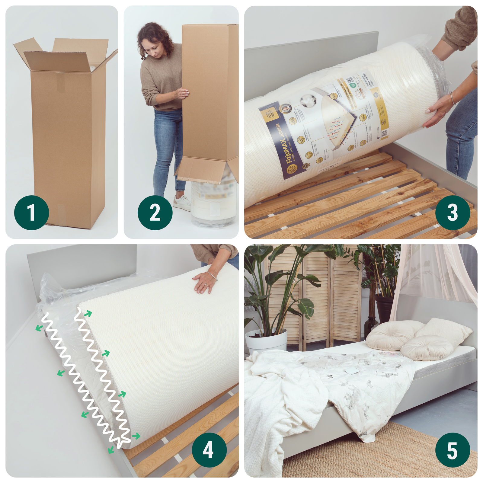 ▶️ Zrównoważony transport - materac dostarczany jest w formie zrolowanej lub złożonej, co zmniejsza emisję CO2 dzięki bardziej efektywnemu transportowi i oszczędności miejsca w magazynach oraz pojazdach przewozowych.