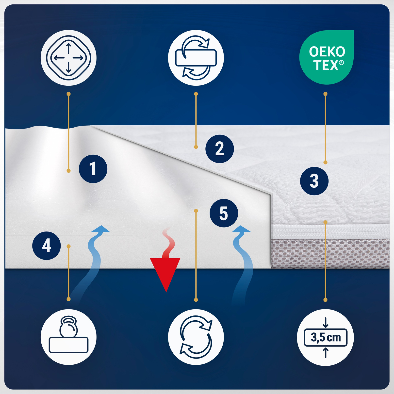 ✅ Twój maluch oddycha czystszym powietrzem, bo materac skutecznie eliminuje wilgoć, bakterie i roztocza