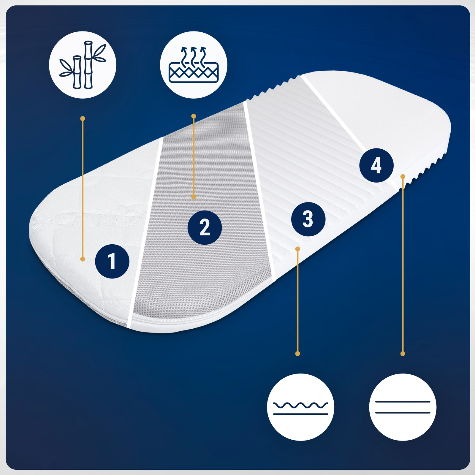 ▶️ Materac został zaprojektowany tak, by perfekcyjnie współgrać z kołyską, eliminując ryzyko przesunięć i zapewniając pełne bezpieczeństwo. Brak szczelin oznacza, że rączka lub nóżka dziecka nie zakleszczy się podczas snu.
