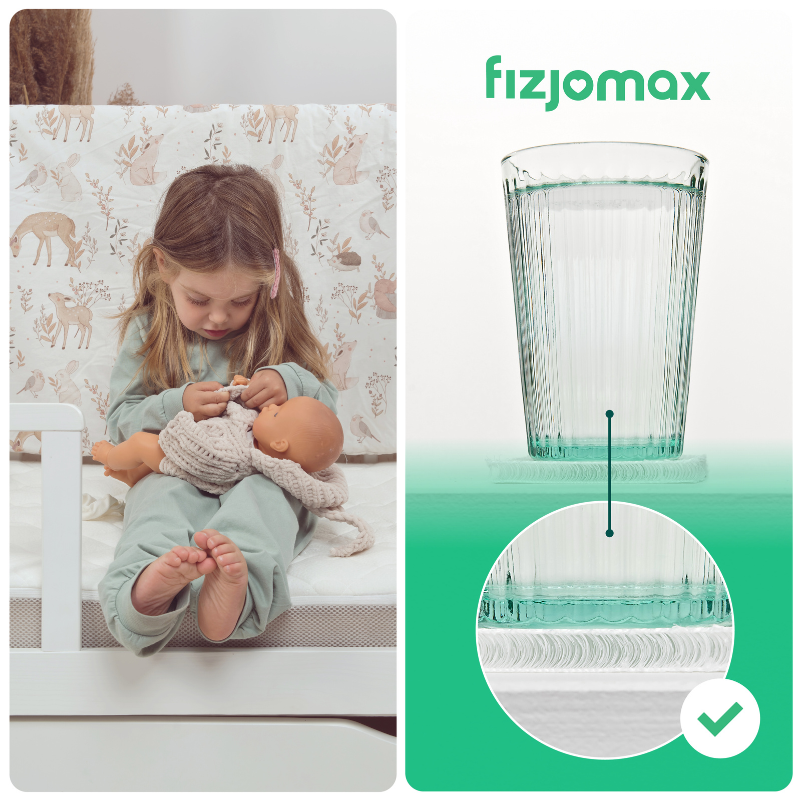 Choć oba modele należą do linii FizjoMAX i korzystają z wysokiej jakości materiałów, są zaprojektowane z myślą o dzieciach na różnych etapach rozwoju i różnią się kilkoma kluczowymi elementami: 1. Pokrowiec FizjoMAX Baby: dzianina Tencel z dodatkiem wosku wodoodpornego – materiał pozostaje miękki, przewiewny i spowalnia przenikanie cieczy. W codziennym użytkowaniu z pieluszką nie wymaga dodatkowego ochraniacza. FizjoMAX Junior: pokrowiec bambusowy bez warstwy wodoodpornej – w przypadku ryzyka przemoczenia zalecamy stosowanie ochraniacza. 2. Usztywniona ramka FizjoMAX Baby: posiada ramkę wokół materaca, która wspiera dziecko podczas nauki wstawania i chodzenia w łóżeczku, zwiększając bezpieczeństwo. FizjoMAX Junior: nie posiada ramki – przeznaczony jest dla dzieci, które już samodzielnie chodzą i nie wymagają dodatkowego wsparcia przy brzegach. 3. Wkład materaca FizjoMAX Baby: jednolita pianka HR o gęstości 40 kg/m³ – zapewnia wysoką sprężystość, oddychalność i komfort, idealna dla niemowląt. FizjoMAX Junior: dwuwarstwowy wkład – 8 cm pianki HR + 4 cm pianki PUR, obie o gęstości 40 kg/m³. Konstrukcja zapewnia lepsze podparcie dla większego, cięższego dziecka i zwiększa trwałość materaca.