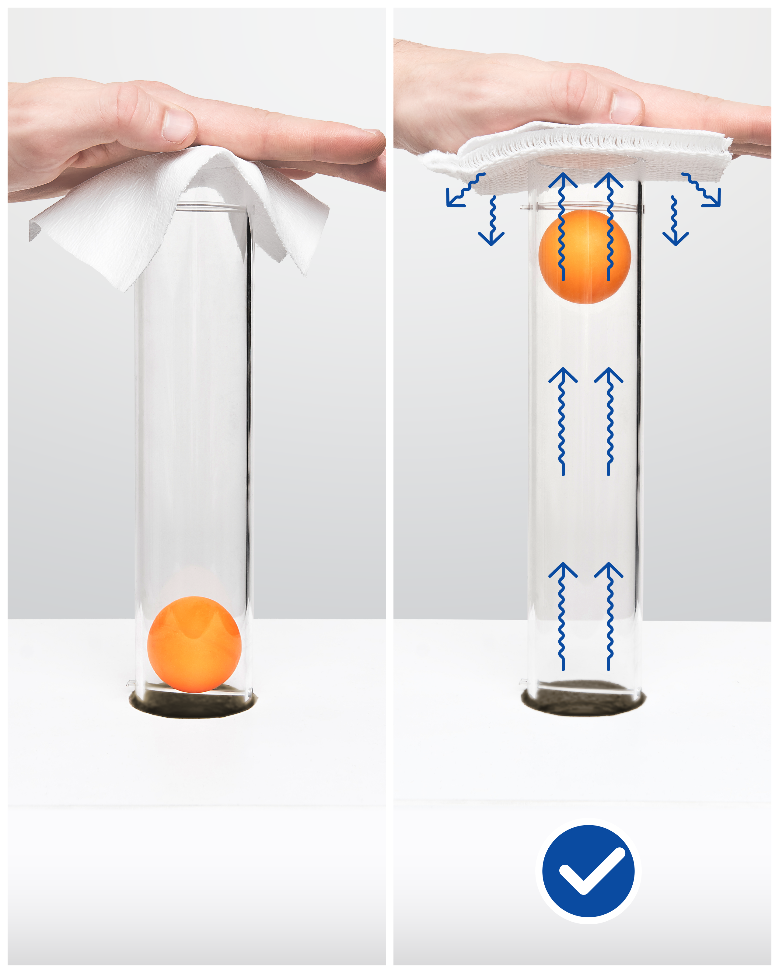 1️⃣ Standardowy ochraniacz: piłeczka opada – przepływ powietrza jest ograniczony.