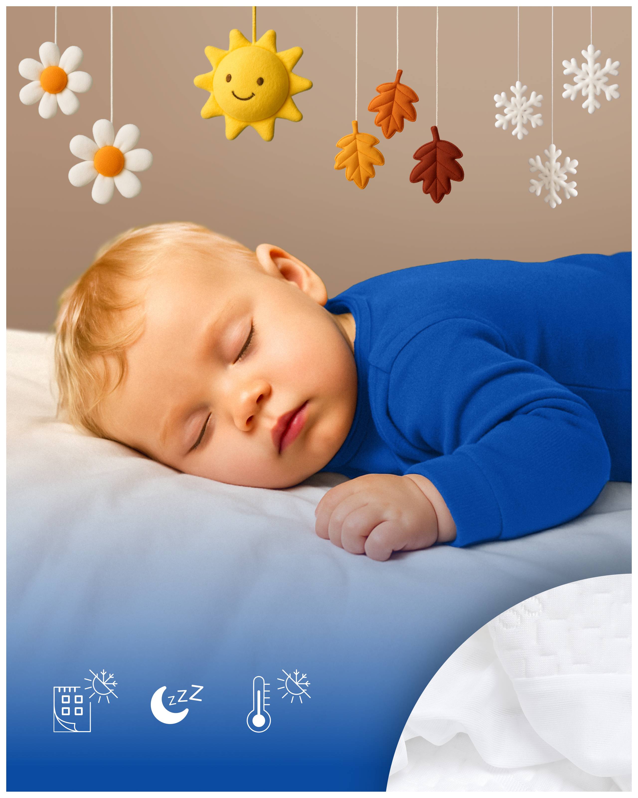 Ochraniacz został zaprojektowany tak, aby dokładnie przylegał do materaca o grubości do 13 cm.