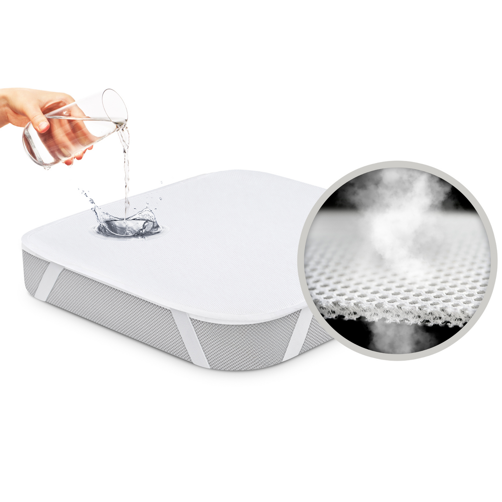 ✅ Mocne gumki na rogach – zapobiegają przesuwaniu się ochraniacza na materacu.