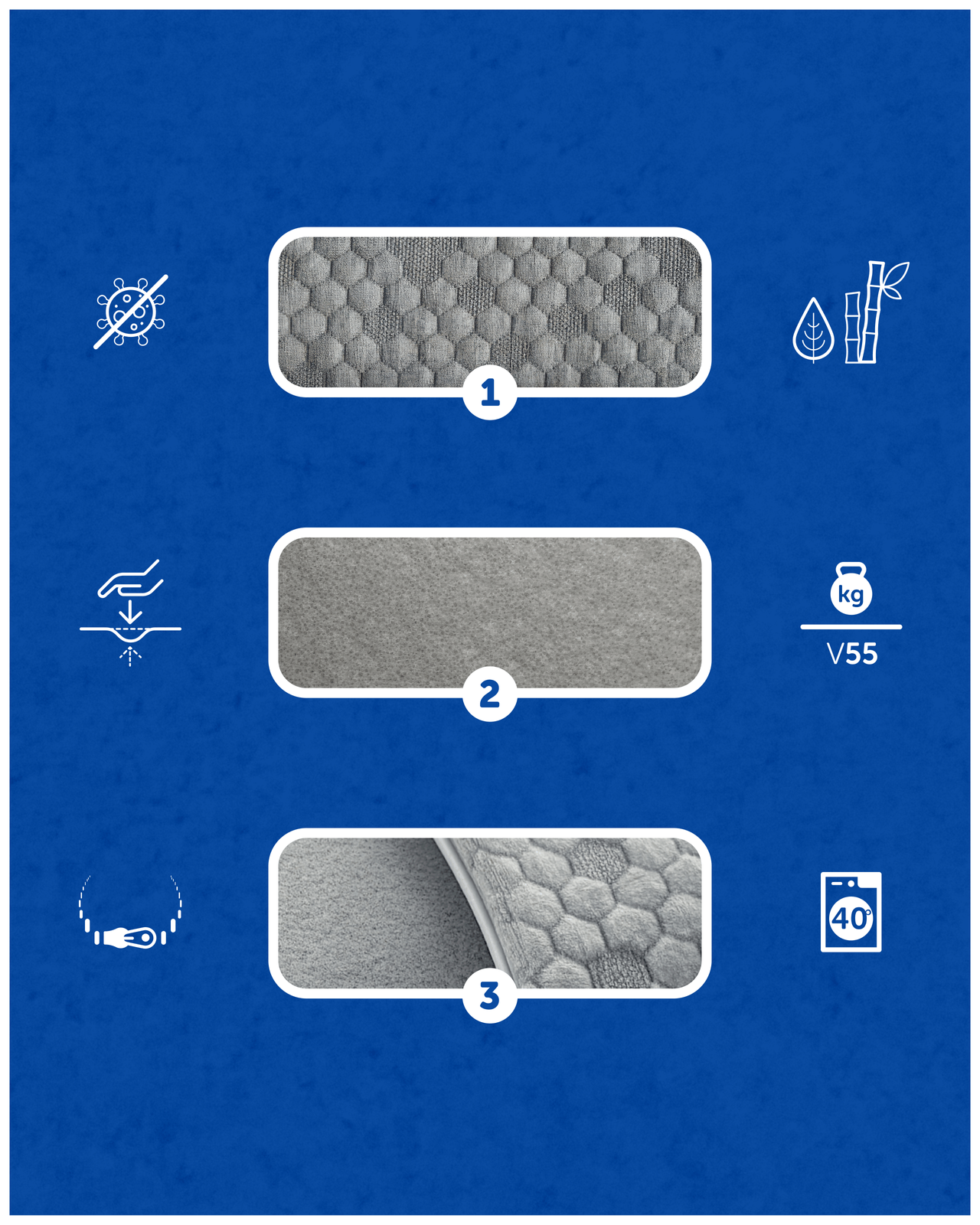 • Pokrowiec z dodatkiem bambusowego węgla – wspiera świeżość i higienę użytkowania