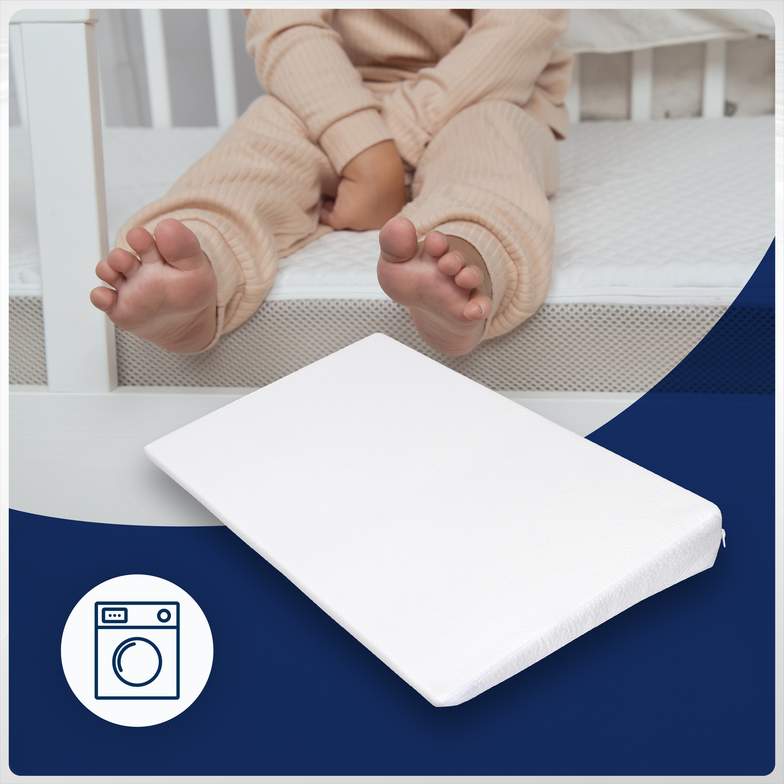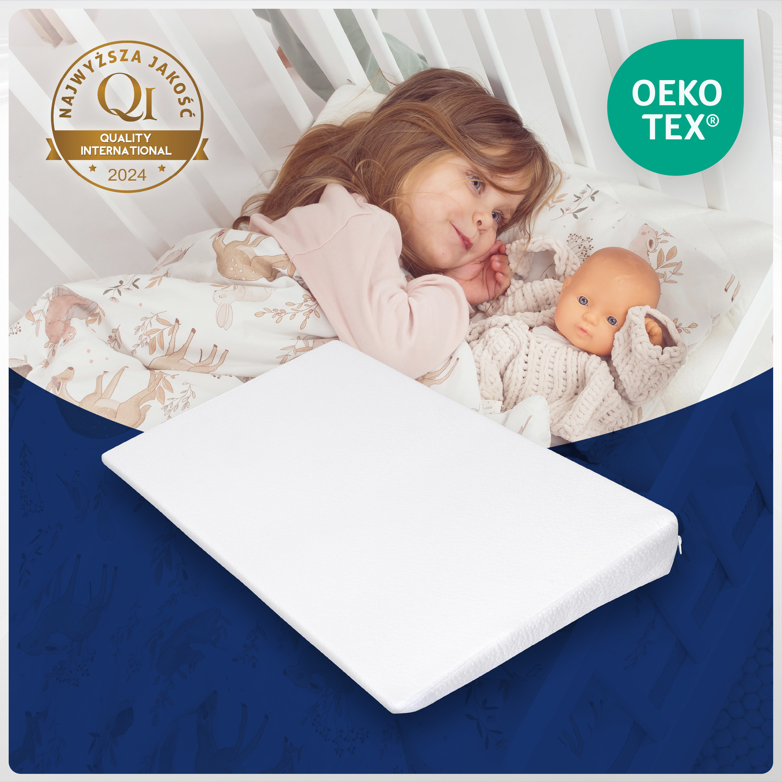 ✔️ Klin unosi górną część ciała dziecka o kilka centymetrów, tworząc optymalny kąt nachylenia materaca.