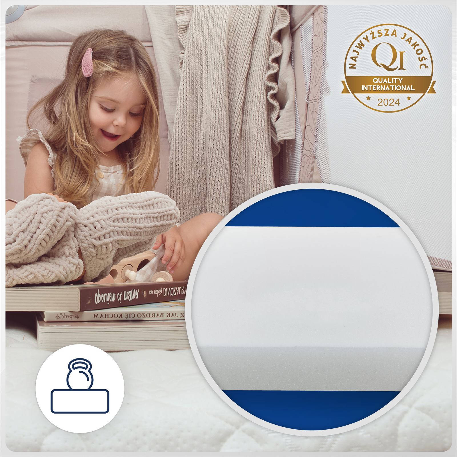 ✅ Stosujemy piankę T25/42 – o gęstości 25 kg/m³ i twardości 4,2 kPa, czyli dokładnie taką samą jak w naszych materacach dziecięcych.