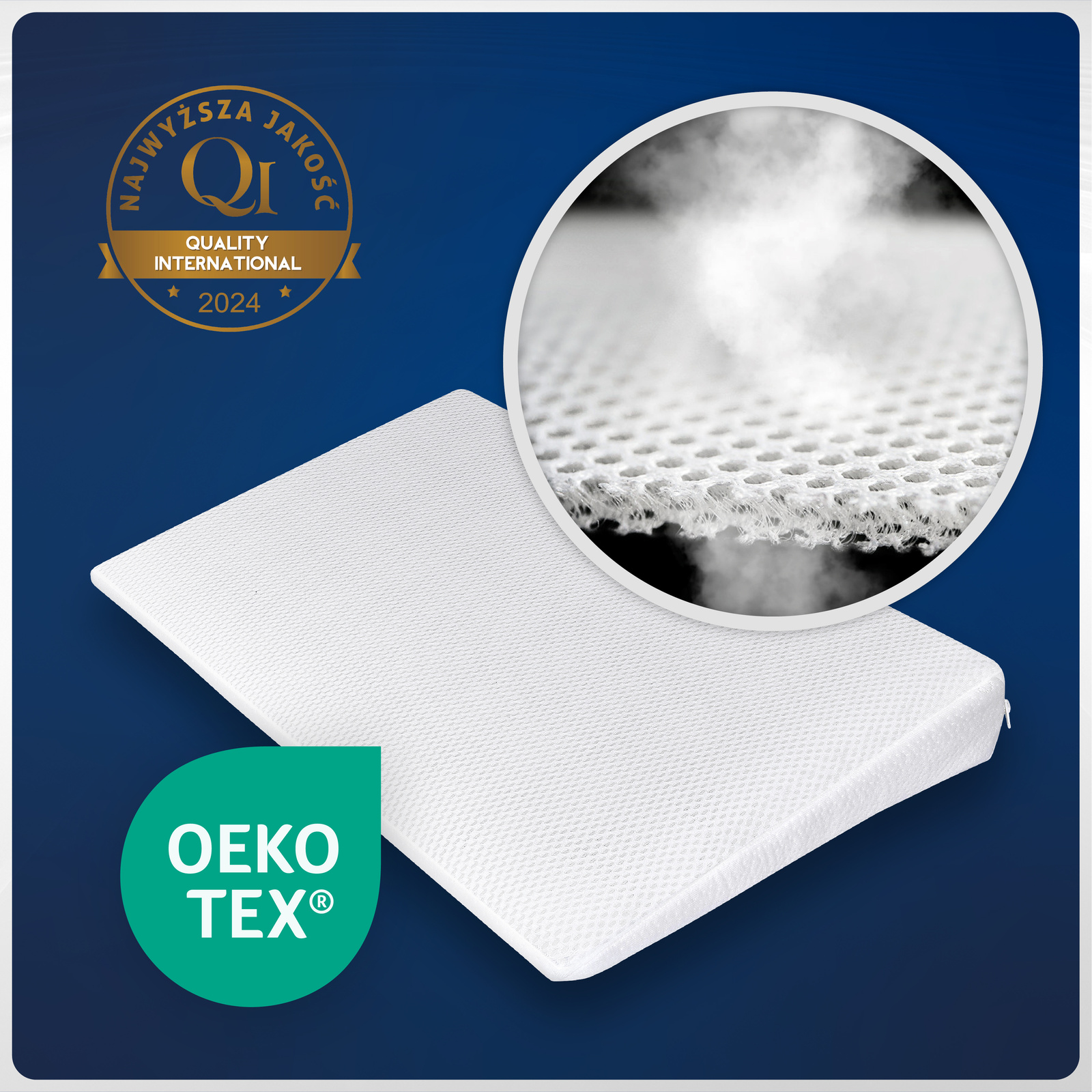 ✔️ Jedna ze stron klina została wykończona siatką 3D, która ułatwia odprowadzanie wilgoci spod materaca.
