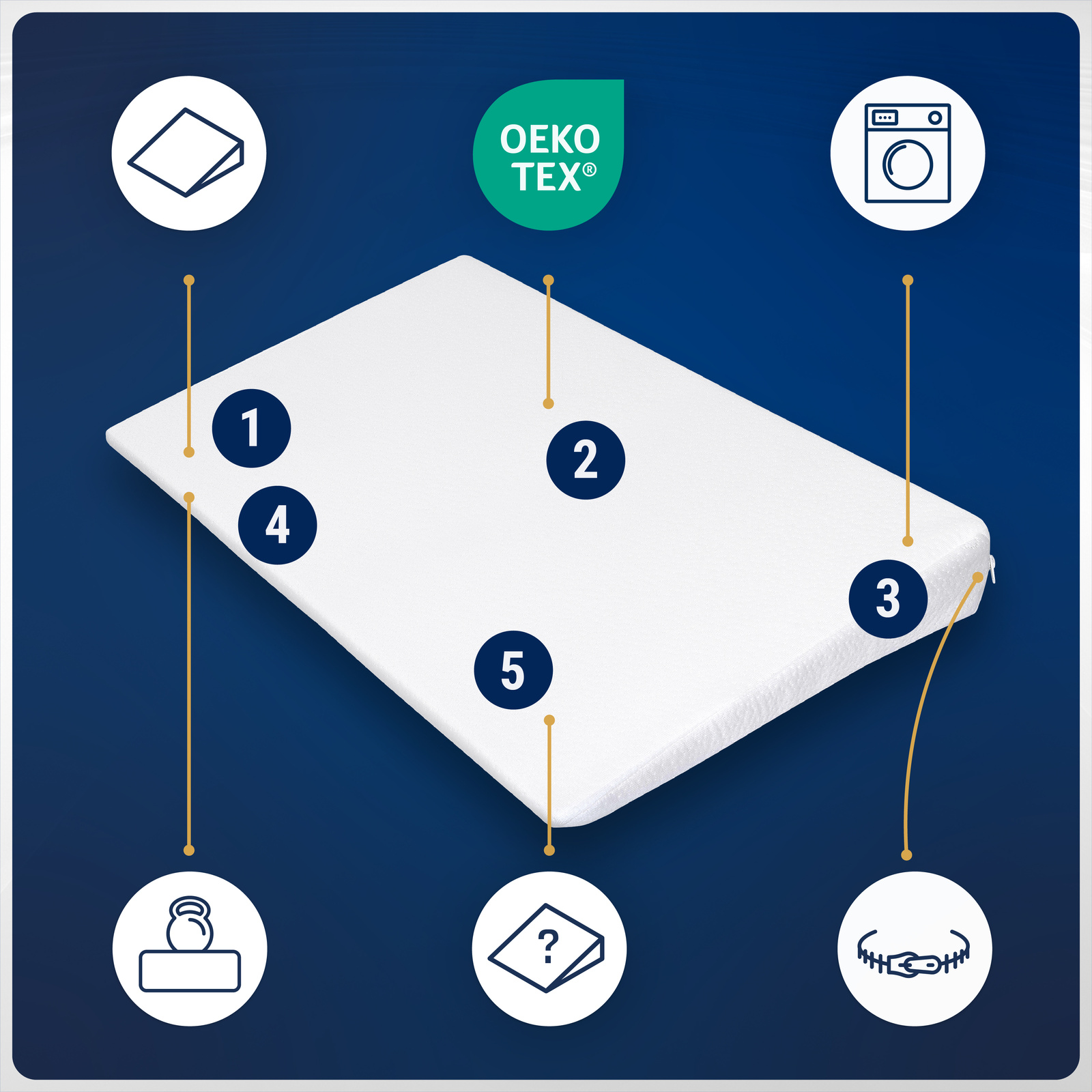 1. Pianka T25 – solidna w codziennym użyciu Materiał o dobrej trwałości i sprężystości, idealny do regularnego użytkowania, zapewnia stabilne podparcie. 2. Możliwość prania pokrowca Możliwość wielokrotnego prania w temperaturze do 40°C – pomaga utrzymać higienę i świeżość produktu na co dzień. 3. Funkcja klinowa Do ograniczania ryzyka zachłyśnięcia przy ulewaniu lub refluksie. Do ułatwiania oddychania podczas kataru i infekcji dróg oddechowych – poprzez uniesienie górnej części ciała.